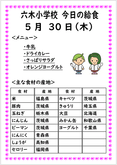5月30日(木) 日付: 5月 30, 2024 リンクを取得 Facebook × Pinterest メール 他のアプリ 今日の給食は「ドライカレー」カレーの材料は豚ひき肉・たまねぎ・にんじん・にんにく・しょうがここまではいつものカレーと同じですが…大豆・ピーマン・セロリも入っています。1年生の児童が「今日、はじめて完食できた。」と、うれしそうに報告に来てくれました。食べきれる量を盛り付けてみても、実際には食べられないこともあります。食べられたという体験が、今後も増えていってほしいです。 コメント